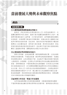 3 推敲未來走向:分析世界當前態勢所引起的種種影響、與主要勢力的抗衡消長,進而推敲未來可能的發展方向。