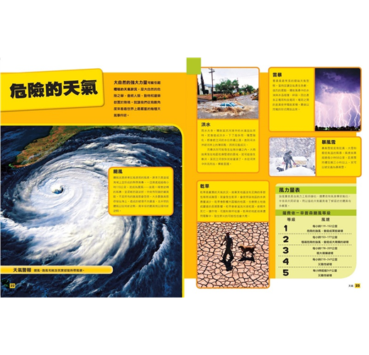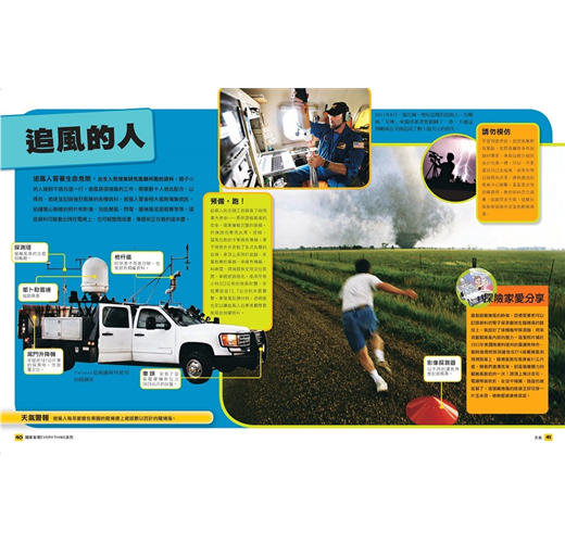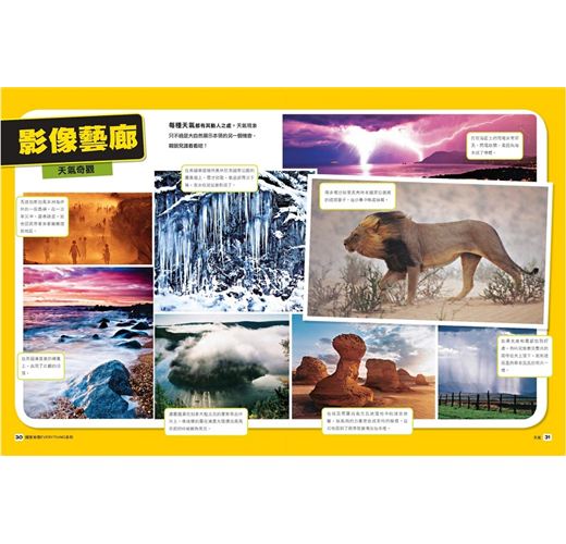每一本都包含了100幅以上的精采照片,以及「探險家愛分享」專欄,告訴你國家地理探險家在野地中實際遇到的新鮮事。另外還有貫穿全書的趣味知識、地圖、資訊圖表、影像藝廊、超級比一比、幕後花絮、互動式名詞解釋等,讓小朋友忍不住想一探究竟。