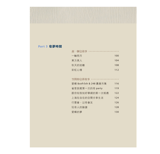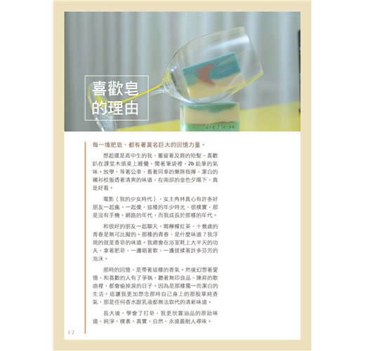 Amber這書,既接地氣扎扎實實講做好人工皂,又通天空,用近乎禪的寬度來描述心的躍動。她自己說:原來,她不是在做手工皂,她是藉由這件事,做為她表達對世界感情的平台!