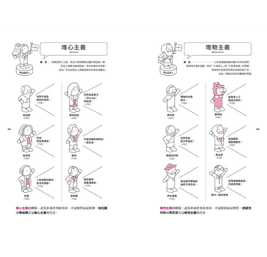 ■史上最簡單!以超過500幅粉紅色插圖,介紹210個哲學概念,看圖就能直覺理解。