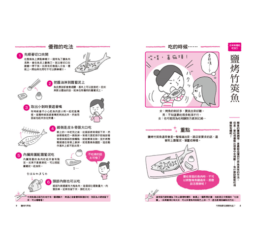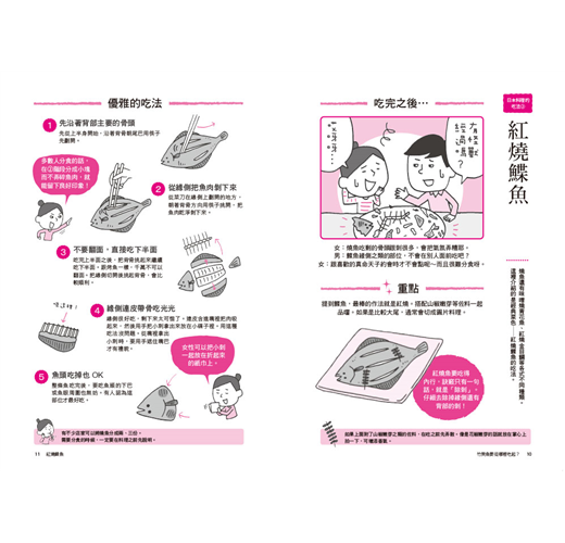 你知道坐在高級壽司店吧台的位置吃美味壽司時,是不能夠將廚師放在吧台上的壽司拿到自己面前享用的嗎?吃天婦羅時,必須依照食材的口味輕重來選擇調味料嗎?壽喜燒的吃法,關西、關東大不同?鰻魚飯要如何三吃?精緻的懷石料理應該怎麼吃?還有使用筷子的禮儀,盤坐的方法,茶道的禮儀等,《竹筴魚要從哪裡吃起?:約會、宴席、餐敘,印象一百分的用餐禮儀》都有詳細的介紹。