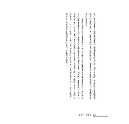 「小三子幾浮幾沉,萬生萬滅,起惑造業,流轉不窮,狂暴的場面不斷出現,海嘯長決,橫掃人間的細緻精巧。故事節拍迴環往復是於梨華的另一特長,在這裡發揮起來遊刃有餘。」