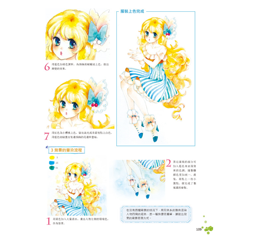 用水彩畫出各種美少女。女性的婉約青春的風姿與水彩淡潤繽紛的色彩結合,創造出更加縹緲的繪畫之美