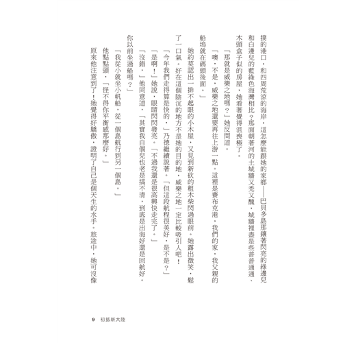「沒錯,」他同意道,「其實我自個兒也老是搞不清,到底是出海好還是回航好。你以前坐過船嗎?」
