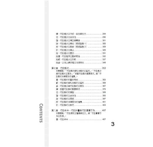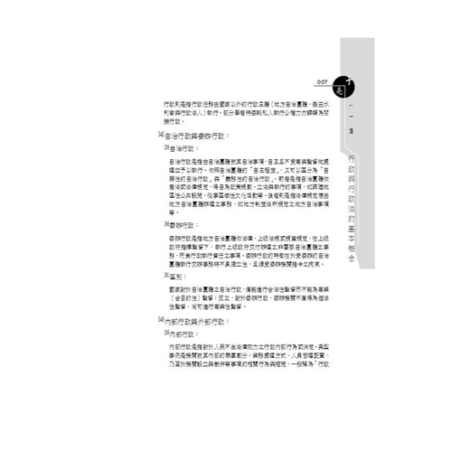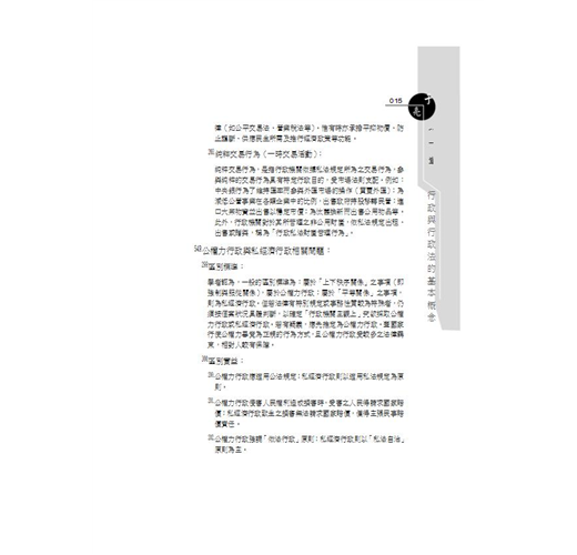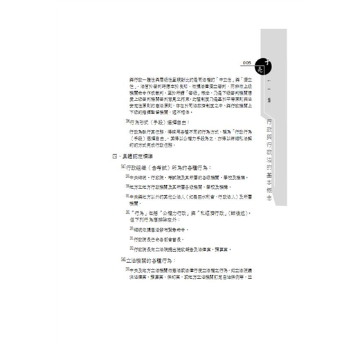 2.先從了解行政法諸多重要基本概念開始,接續體會大陸法系公私法二元制度下的具體權利義務關係,進而悠遊於憲法、法律、行政命令、條約協定與一般法律原則的大海之中。