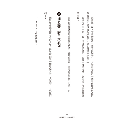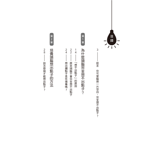 作者歸納出簡單實用的方法,傳授培養靈感的正確心態,讓爛點子也能成為好點子。
