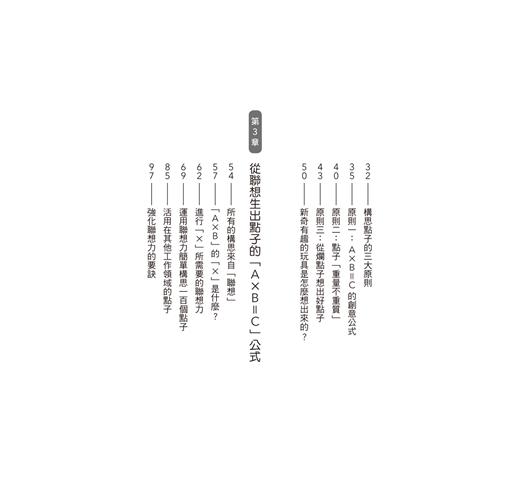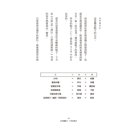 以A × B=C的公式不斷串聯,類似的構思要多少有多少,還能獲得眼睛一亮的絕妙創意。