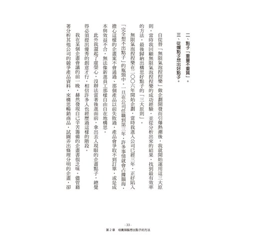 此時關鍵就在於思考的過程中,能讓人開心多少。當狂想的次數愈多時,你所需要的好點子,就愈有機會靠近你身邊。