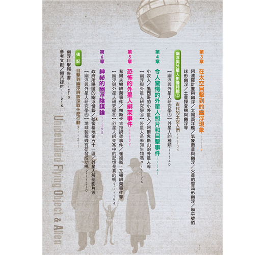 目擊幽浮或遇到外星人的事件層出不窮,天文與幽浮專家依目擊者和幽浮之間的距離,分類為「遠距離」和「近距離」,合計共七種分類。翻開本書,各類遠近距離的幽浮現象,毫不隱藏地揭示在你的眼前!