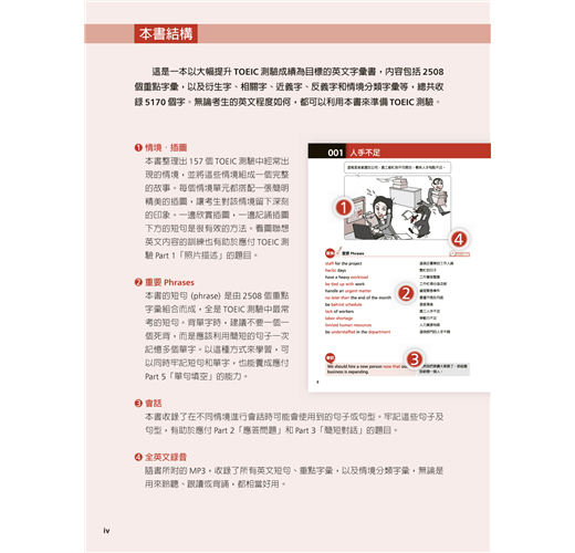 收錄TOEIC最常出現的157個情境,搭配帶有故事性的插圖,能有效加深單字印象,更有助於應付Part 1「照片描述」題。