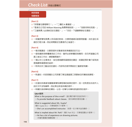 收錄進行會話時會使用到的句子或句型,有助於應付Part 2「應答問題」和Part 3「簡短對話」題。