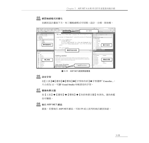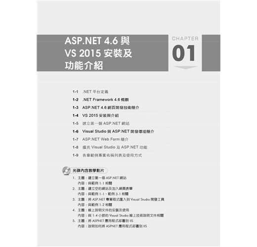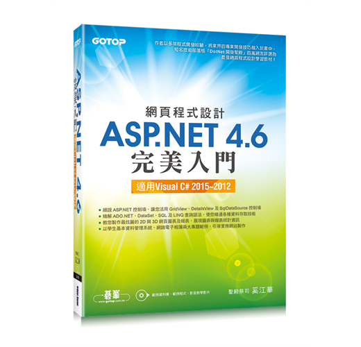 .涵蓋ASP.NET 4.6技術架構、VS 2015、C#語法、ASP.NET控制項,即使沒有基礎的初學者亦能循序漸進地學習上手。