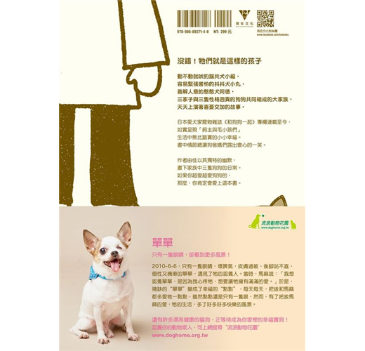 ★希望藉由本書,帶給那些為了狗兒女的生活問題煩惱的狗爸媽們,一點點啟發,因為書中情節露出會心一笑的同時,能認同理解「牠(們)也不過就是這樣的孩子」。