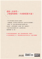 自序──一種愛情,各自表述 孫中興 前言──人生大課的感動與理解 鄭幼芳 01∖「愛」是什麼 •愛情的成分 008 ──浪漫愛 附錄 愛情量表、喜歡量表 020 •愛情色彩──潛在的愛情性格 022 ──愛情的顏色理論 愛情態度量表 033 •愛,從何而來 038 ──依戀理論 02∖怦然心動了──愛情的開始 •我想我們不只是朋友 050 ──如何確定「我戀愛了」? •戀愛Online開放中 056 ──愛情開始的過程 •我為什麼喜歡你? 061 ──愛是感覺還是錯覺 附錄 遇上真愛的三十六個步驟? 074 03∖關於愛的那些問號──愛情的迷思 •那些電影、情歌告訴我們的事 082 ──一見鍾情 •戀愛的十萬個為什麼 088 ──「開始」與「開始不了」的迷思 04∖從一個人到兩個人──建立關係 •讓我們開始「有關係」 100 ──告白的4W1H •手牽手,我們一起走 105 ──配對遊戲 05∖好好在一起──愛的經營 •我們從此幸福快樂? 124 ──多階段的愛情觀 •相愛容易,相處太難 130 ──增強理論 •拔河與磨合──走向穩定 138 寫出自己的幸福劇本 149 ──人格特質與幸福的正相關、負相關 06∖戀愛S.O.S──愛情的變數 •當愛情遇上亂流 164 •愛情的賞味期限 171 ──越來越重要與越來越不重要 •熱情與冷卻之間 176 ──距離與溫度 •我和你,還有一個他 181 ──「第三者」的介入 結語:平等對待、共同奮鬥 196 參考書目 198