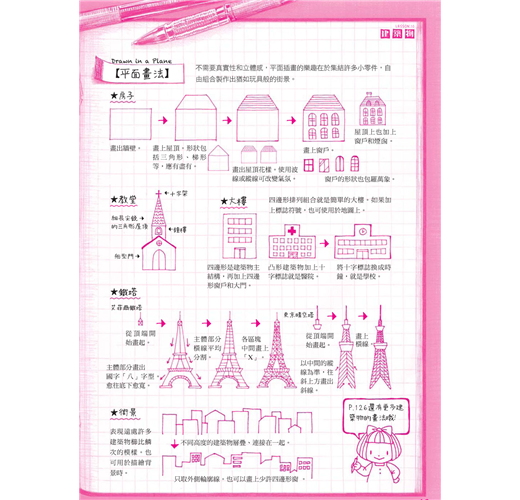 ■ 12堂課主題式教學,每堂各有10種以上插畫練習