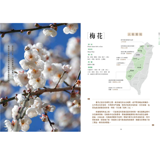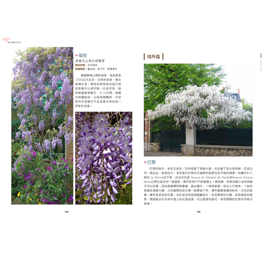 叢山峻嶺間的梅花瀑、薰衣草紫藍色花浪、繽紛熱鬧的鬱金香花海、蜿蜒曲折於花架成廊的紫藤、連綿2公里的風鈴木金黃花道……,白、粉、紫、黃、橙各番令人讚嘆的花海景致與單朵特寫,本書都能盡情飽覽!此外對於不同花色、花型及相似品種,本書也有簡單說明,讓你即時了解相關知識,成為親友出遊的最佳話題。