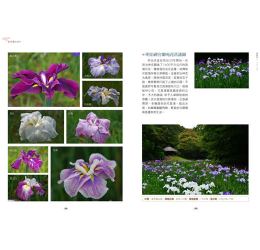 除了踏足台灣各地美景,本書還精選幾處國外人氣賞地,帶你到日本九洲欣賞春光中優美婉約的櫻花林,至明治神宮御苑花菖蒲園看各色花菖蒲,前進薰衣草的故鄉普羅旺斯,徜徉於綿延無盡的紫色花海,感受世界各地的美景!