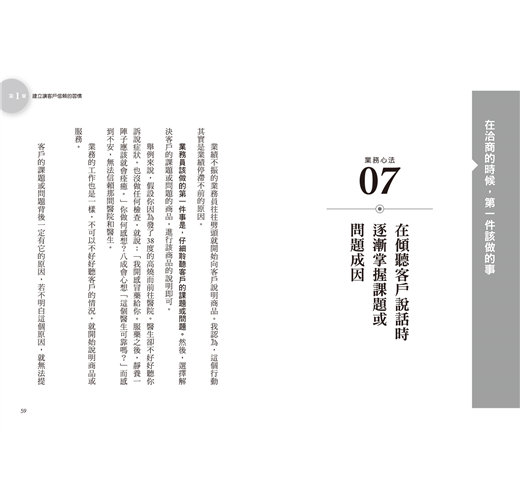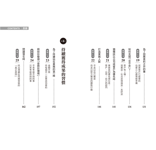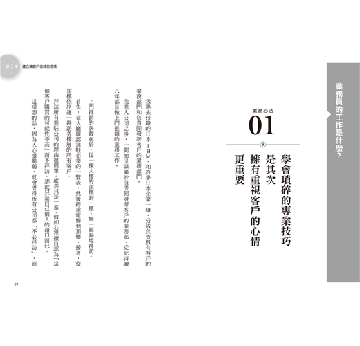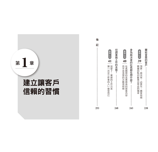 那就是和客戶一起決定「該怎麼做才能讓客戶滿意」這種「滿意的標準」。如果知道客戶的「滿意」和「不滿意」的標準,業務員接下來只要採取超過該標準的行動即可。