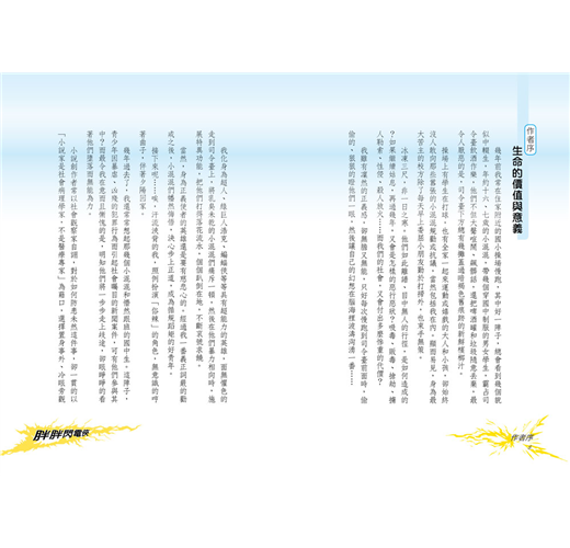 這本小說的出版,除了讓我個人的幻想成真,並徹底消除內心「俗辣」的羞愧感外,更期待所有關心青少年品格的偏差問題,並為他們可能犯下離經叛道行為而憂心的老師或家長們,能藉導讀或親子共讀的互動過程,達到潛移默化與防微杜漸的效果,進而協助他們衝破層層阻礙,順利踏上康莊大道!