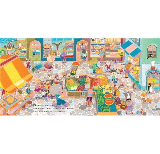 束。畫面上早起活動和市場買賣的人群、花店,隱身花草間的蟲兒,