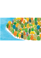 翻開《大象在哪裡?》,迎面而來的是一片蔚藍海洋,遠處有座亞馬遜熱帶雨林的小島。仔細瞧瞧,蓊鬱繁茂的樹木後,是誰藏身其間和讀者玩躲貓貓呢?