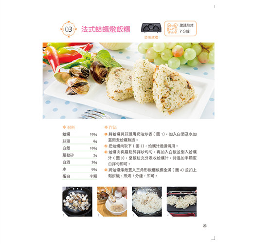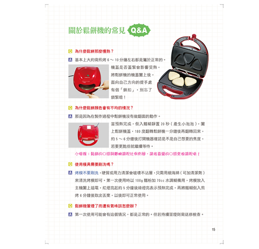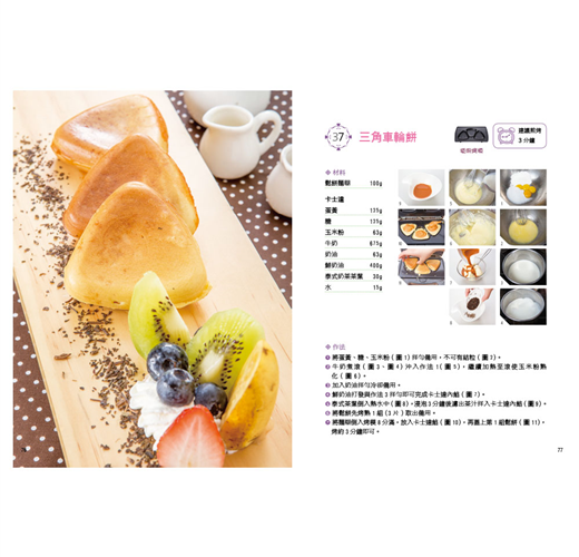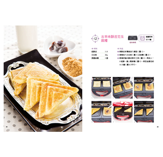 教你用八種模具做出47道甜點,XO櫻花蝦翡翠大阪燒、西班牙烘蛋牛角三明治、草莓起酥千層、焦糖蘋果、荷蘭銅鑼燒……你意想不到的變化,只需要一台鬆餅機就能完成百變料理,讓你擺脫格子造型的傳統印象,誰說鬆餅只有格子狀呢?