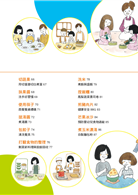 ★ 50 個日常生活活動 + 50 個延伸活動:切蔬果、搓湯圓、包餃子、洗米、穿脫鞋子、摺衣物、綁鞋帶、收拾玩具、擦地板、搭乘電梯禮儀、生日聚會、孝敬長輩等