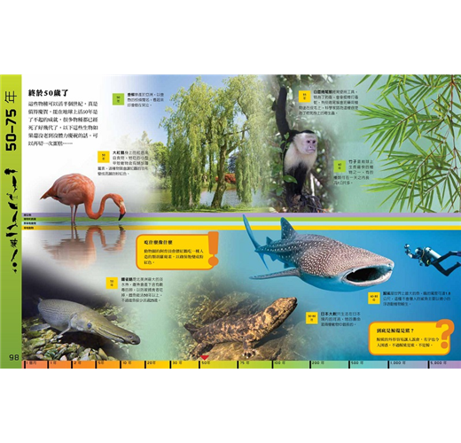 ●透過生動活潑的圖表、資訊欄、生命時間軸以及精美的圖片,一窺230個不同的物種於地球上的生命時間