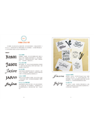 【Chapter3實際應用】多變化,生活中的藝術! ●生活中的常用句 常用句1-哈囉Hello 常用句2-謝謝Thank you 常用句3-我愛你I love you 常用句4-很高興見到你Nice to meet you 常用句5-祝你有個愉快的一天Have a nice day 常用句6-生日快樂Happy birthday 常用句7-情人節快樂Happy Valentine's Day 常用句8-聖誕快樂Merry Christmas 常用句9-新年快樂Happy new year ●自創風格字 自創字1-簡單雙色字 自創字2-簡易立體字 自創字3-線條裝飾字 自創字4-點點陰影字 自創字5-深淺重疊字 自創字6-渲染效果字 ●無所不在的美字 生活應用1-禮物卡 生活應用2-服飾 生活應用3-帆布包 生活應用4-貼紙 生活應用5-黑板 生活應用6-擺飾盤 生活應用7-手機殼 生活應用8-商業設計/海報 生活應用9-刺繡 生活應用10-織標 生活應用11-金工飾品