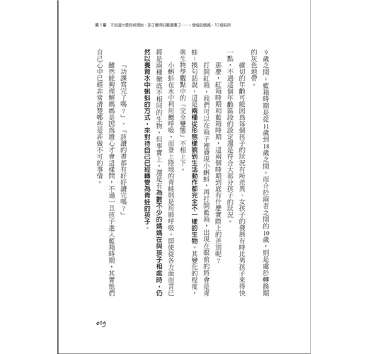 我常常說孩子的成長階段分為「紅箱」時期與「藍箱」時期。紅箱時期是從4歲到9歲之間;藍箱時期是從11歲到18歲之間。而介於兩者之間的10歲,則是處於轉換期的灰色地帶。