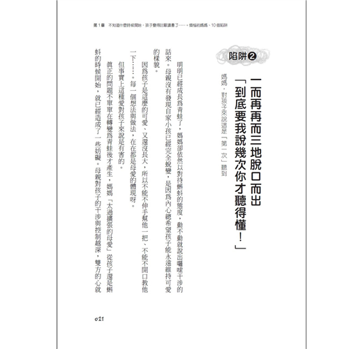 開頭的第一節,我想探討的是一個媽媽越是愛孩子、越是擔心孩子,就更容易落入的陷阱。
