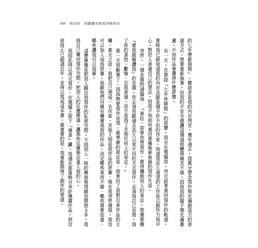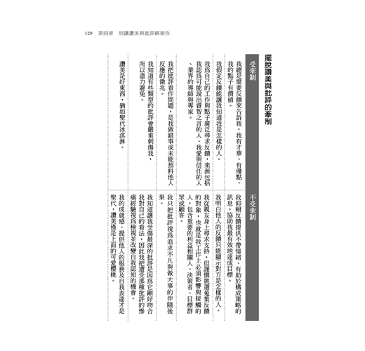 我欣賞本書作者開門見山地點名「聽到自我批判、懷疑之聲」為本書破題,尤其是描述「當內在判官出自我的母親該怎麼辦」「如何將內在判官調整為內在良師」,都是抽絲剝繭、具有療癒價值的思路。