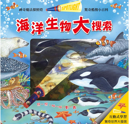 5種不同場景,超過40種的海洋生物,先了解不同地區的生態和物種,再透過神奇魔法探照燈找一找、數一數,輕輕鬆鬆學知識!