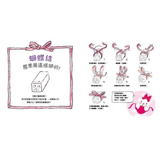 ◎結合故事、步驟圖、口訣的設計,帶領孩子邊玩邊學習打蝴蝶結。與幼兒建立安全健康的情感關係,就從溫柔的雙手開始吧!