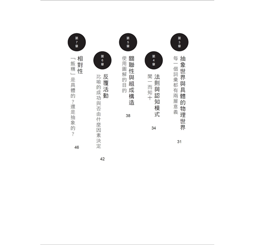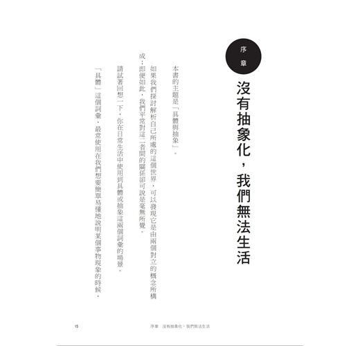 本書將以「具體與抽象交錯說明」的方式呈現,將會發現兩者間的對立構造,與包含其中的智慧。讓你適切掌握「具體→抽象→具體」,這種反覆活動,兩者間是如何的相輔相成運作。