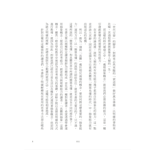 1.作者意識到這個全方位重視具體性「簡單易懂的時代」,已出現抽象能力現退化的危機,有義務寫這本書告訴讀者,如何加強「具體←→抽象」之間平衡的運作能力,令人可敬。