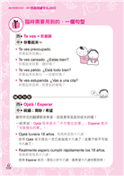 西語會話中,除了「關鍵字+關鍵字」的說話方式之外,基本的簡單句型也是必備的,另加上幾句常用的生活短語,把句型和短語如同記單字般地記起來,在西語口說上更能無往不利。