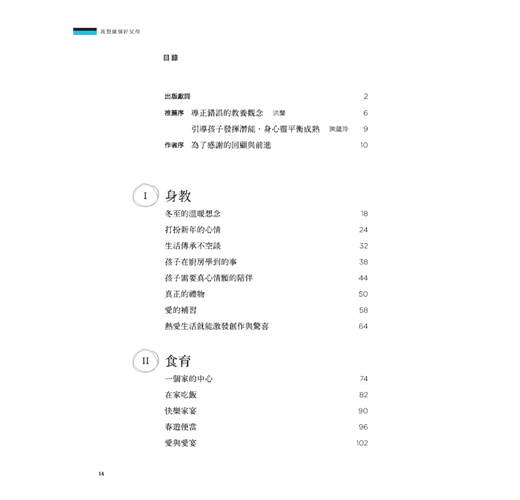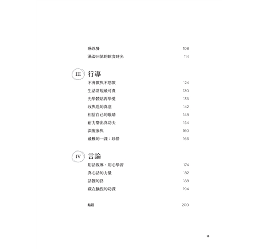 09 一個家的中心 10 在家吃飯 11 快樂家宴 12 春遊便當 13愛與愛宴 14 感恩餐 15 滿溢回憶的飲食時光