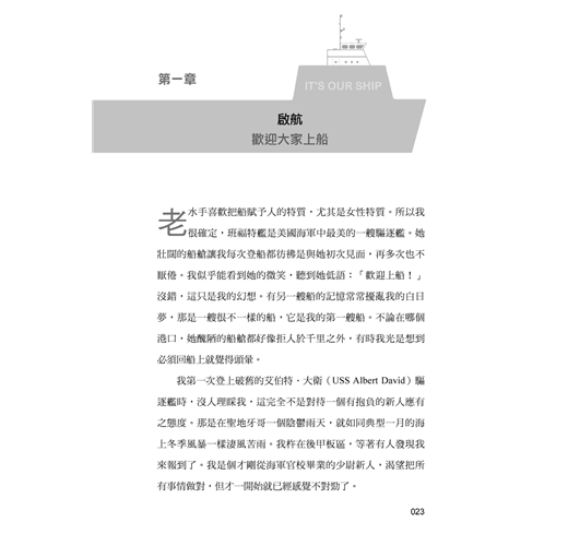 《這是你的船》敘述我和全體官兵如何將一艘擁有高科技,但未能發揮實力的導彈驅逐艦「班福特艦」(USS Benfold),打造成美國海軍中最優秀的軍艦。這本書後來登上了...