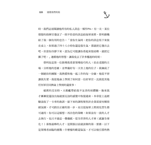 整體而言,這是一本捲起袖子實作的領導書。就讓艾伯拉蕭夫艦長立刻告訴你與員工:該怎麼做?怎麼才能做對?