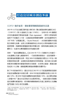 歐美城市為了減少碳排,早於十多年前積極改善交通所衍生的環境問題,積極建構完善的公共運輸、闢建自行車專用道、打造舒適的步行空間,如蘇黎世沒有公共運輸到不了的地方、溫哥華的自行車上陸下海到哪都行、日本的行人最大,許多精彩的城市案例均在本書一一呈現。
