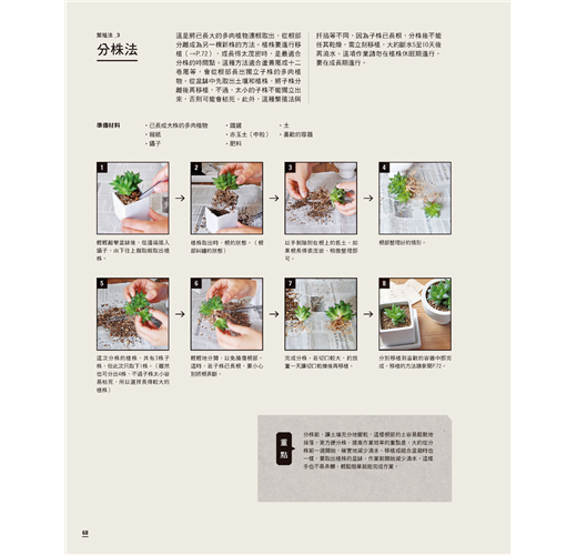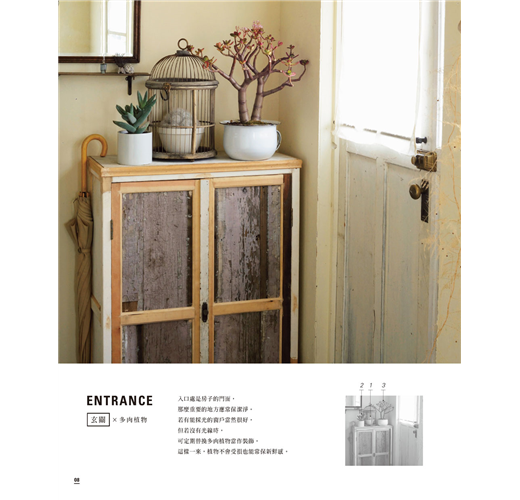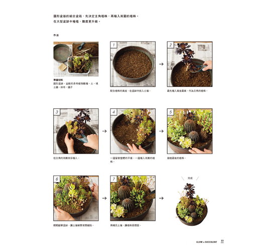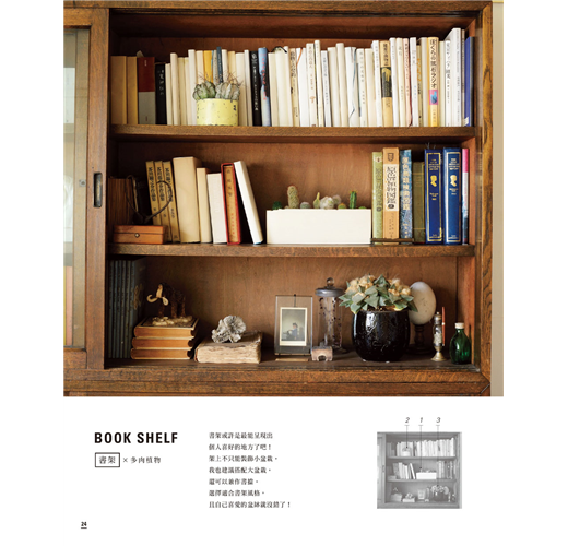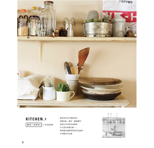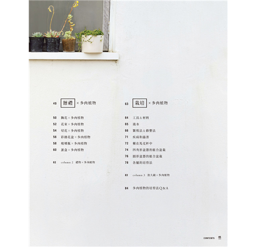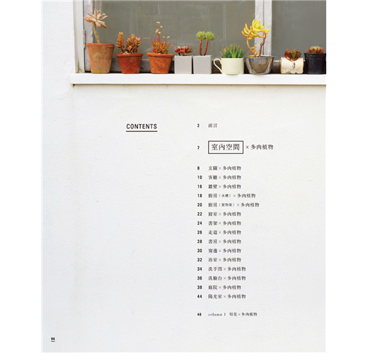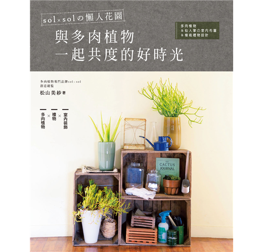 日本的多肉植物專門品牌sol × sol的創意總監松山美紗,以創意的思維,為家中的各個角落設計出了多肉植物的不同場景,如:玄關、客廳、壁面、廚房、臥室、書架、浴室……選擇適合該場所特性的多肉植物,搭配上個性風的盆器,讓日常生活都能被最喜歡的多肉植物所圍繞!