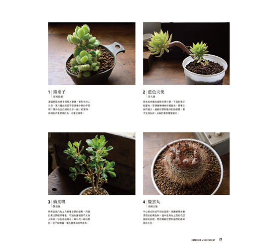 只要掌握了栽培的要領,無論是誰都能輕鬆地培育出生命力強韌的多肉植物。而因應栽種環境的不同,即使是同一品種,也會變化出各種姿態,充滿了意外與喜悅的期待心情,就是與多肉植物一起生活所能帶來的最大收穫吧!
