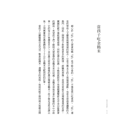 這幾年孩子在課本上讀過吳晟老師的詩。我從書架上拿起二○一一年由他和小說家吳明益所共同主編的《溼地.石化.島嶼想像》,和孩子們分享吳晟老師的性情與志業,就以幾十年來在家鄉溪州種田、種樹、護土、讀書的吳晟老師所寫的這幾句詩,和所有關心養育的父母一起勉勵吧。當我們渴切探討如何教育出一個聰明、快樂、優秀的孩子時,也許,最動人的文本不在那些教養指南裡,而在於思考如何帶領我們的孩子往「真實的生活」走去。