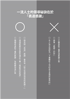 一般人往往會害怕與一流人士見面,我在大學畢業後進入五星級飯店工作,簡直被往來客人的優秀程度打敗,必須經常面對光只是看就覺得「氣勢不凡」的客人,我在心裡默默地崇拜著他們:「這些人有哪裡不一樣呢?怎麼做才能這麼厲害?」 當我身處在這樣的工作環境裡,觀察這些頂尖人士,實際與他們談話,才了解每件事都是有規則可循,一流人士的言行舉止有許多共同點,如果可以準確實踐,就能給人與眾不同的印象。