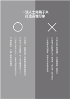 在本書中,我將這些技巧分為五大部分:形象管理、言行舉止的法則、聚餐╲宴客的應對進退、服裝、演講與簡報技巧等,以簡單的方式介紹給讀者。如果能實踐它們,相信你會在不知不覺中學到專業氣質與存在感。