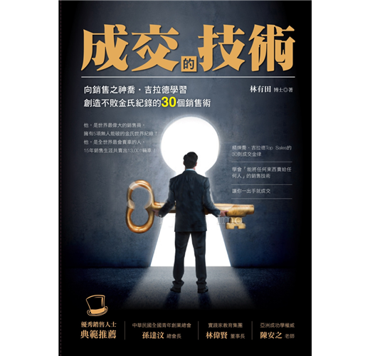 如果你想向喬.吉拉德學習,有三種方法,一是購買他演講會的門票,親臨大師風采;二是省錢一點的方法,可以看喬.吉拉德寫的書;如果英文原文著作讓你傷腦筋,現在有第三個選擇:閱讀林有田博士花費兩年時間完成的《成交的技術:銷售之神喬.吉拉德創造不敗的銷售金氏紀錄30金律》。
