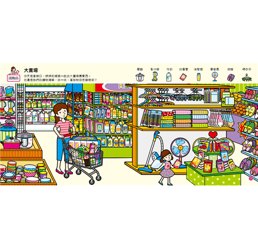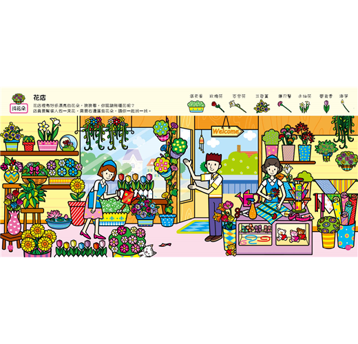 2. 以城市中的商店、百貨、醫院、車站、遊樂園等為主題,設計豐富好玩的 尋寶遊戲,啟發孩子主動「找一找」的好奇心。
