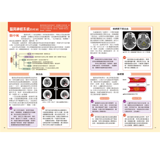 腦部與神經系統的疾病中,有急病與急速的病情變化,威脅生命的危險度高,依情況會留下後遺症。這裡為各位介紹腦中風(腦出血、蛛網膜下腔出血、腦梗塞)及神經痛。