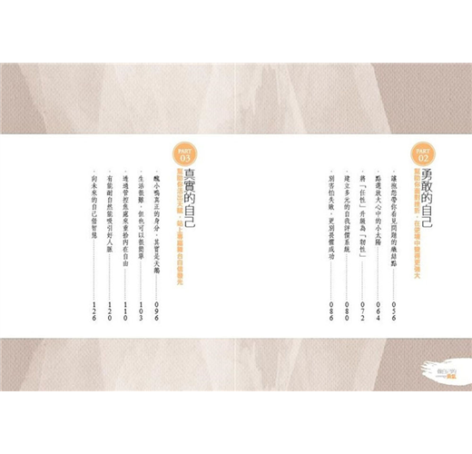 撰寫《做自己的勇氣—35歲以前一定要成為的5種自己》這本書,正是出於這樣的心情。我總認為,三十五歲是一個很微妙的年紀,感覺像是處在第二個起跑點,左右著人生下半場的命運,值得每個人停下腳步來自我檢視一番,問問自己:「截至目前為止,我對自己的人生滿意嗎?」以及「如果可以,希望未來通往哪裡去?」更重要的是,「什麼才是我真心認為,值得用一生去追求跟體現的價值呢?」